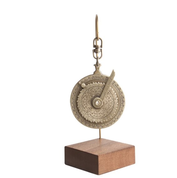 Zatrzymaj wzrok na bezchmurnym, nocnym niebie i opanuj sztukę odczytywania czasu z zapisanego na nim, gwiezdnego szyfru. Ten misterny instrument to wierna, miniaturowa reprodukcja słynnego nokturnalu z 1570 roku, stworzonego przez wybitnego rzemieślnika Humphreya Cole'a (którego oryginał dumnie spoczywa w londyńskim British Museum). Wykonany z trwałego stopu znalu oraz mosiądzu i osadzony na szlachetnej, drewnianej podstawie, przyrząd ten służył dawnym żeglarzom do precyzyjnego określania godziny na podstawie ułożenia gwiazd względem Gwiazdy Polarnej. Zwieńczony wskaźnikiem z wizerunkiem księżyca i wykończony autentycznymi, historycznymi technikami lakierowania, stanowi wybitnie intelektualną ozdobę gabinetu oraz luksusowy prezent dla nawigatora, astronoma czy miłośnika renesansowych wynalazków.