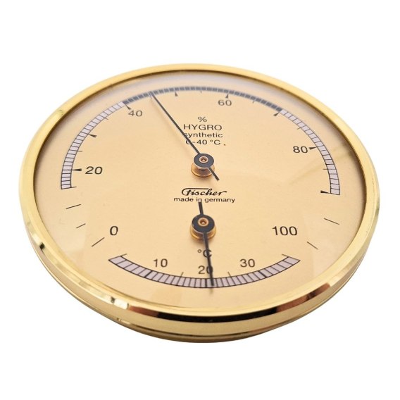 Precyzyjny Higrometr z Termometrem Ściennym – Oprawa Mosiężna – 8,7 cm