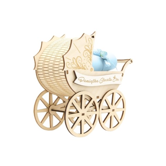 Wózek drewniany Pamiątka Chrztu Świętego niebieski
